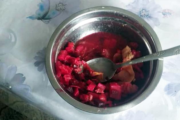 На момент посещения в данном интернате был обеденный перерыв. Сразу, на что обратили внимание представители Акыйкатчы, было то, что детям второе блюдо и салат повара положили в одну посуду. Данный факт повар объяснила тем, что на всех 121 воспитанников посуды не хватает. Однако при этом сотрудники аппарата Омбудсмена увидели, что на полках в шкафу имеется дополнительная посуда, которая не используется для раздачи еды. Как пояснил повар, это посуда работников столовой, которую они принесли из своих домов, и что её все равно не хватит для обеспечения всех школьников.
